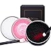 メイクブラシ用の無添加固形せっけん、汚れ落とし用ピンクのラバーパット、ドライクリーニングスポンジ。三つの洗浄アイテムが入っています。